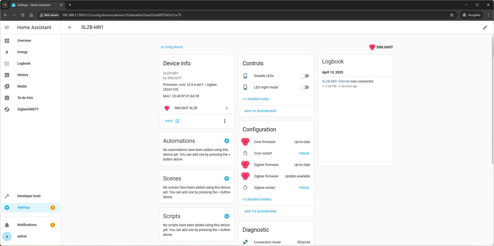 Es ist kein Firmware-Flash erforderlich. Es ist vorkonfiguriert für die Verwendung mit Home Assistant, Zigbee2MQTT oder ZHA und unterstützt automatische OTA (Over-The-Air)-Firmware-Updates für sowohl Zigbee- als auch Kernkomponenten.