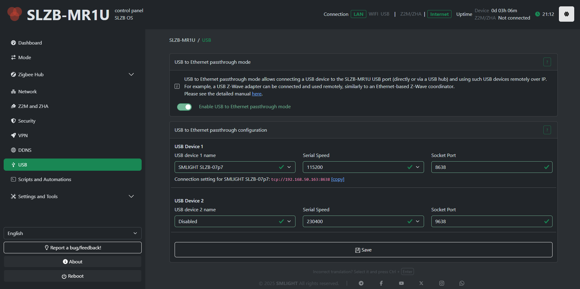 1x SMLIGHT SLZB-MR1 Zigbee/Matter Koordinator